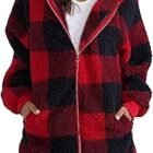 Uwdiohq Abrigo de felpa para mujer, manga larga, a cuadros, con capucha, cremallera y bolsillo, abrigo suelto Vestidos Invierno Mujer Rebajas Cortavientos Hombre Invierno Abrigo Acolchado Mujer Fino