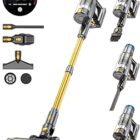 aonus A9S 45KPa/580W/70Mins Aspiradora sin Cable, Aspirador Escoba Vertical con Pantalla Táctil LED, Modo Automático, Carga en Pared, 3 Accesorios para Suelos/Alfombras/Pelo de Animales
