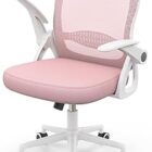 rattantree Silla de Oficina, Silla de Escritorio Ergonómica con Respaldo de Malla Transpirable y Asiento, Silla de Ordenador, Regulable en Altura, Reposabrazos Abatibles, Para Estudio de Oficina, Rosa