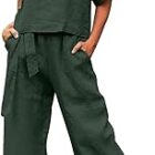 riou Chandal Mujer Vompleto Verano Casual Algodón Lino Suelto O-Cuello Camiseta Y Pantalones Cordón Cómodo Y Transpirable Ropa Para El Hogar Ropa De Deportivo Elegante Casa Pijama Chandal