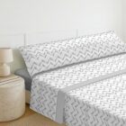 MERCURY TEXTIL – Juego Sábanas de Cama Estampadas 3 Piezas (50% algodón/50% poliéster) Incluye Funda de Almohada + Encimera + Bajera Ajustable. (Cama de 90 cm, Zig Zag Gris)