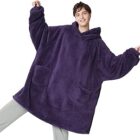 Bedsure Batamanta Mujer Polar Invierno – Bata Manta Hombre con Mangas, Sudadera Manta con Capucha, Blanket Hoodie de Tejido Felpa Suave con Bolsillo Frontal, Manta Bata Gigante Púrpura, 107×90
