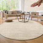 Paco Home Modern and Soft Rug for Living Room with Short Pile Washable Fluffy Uni Effect Timeless Elegant Non-Slip Easy to Clean, Size: Ø 160 cm Round, Colour: Cream