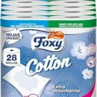Foxy Cotton Papel higiénico, 28 rollos, 5 capas con verdaderas fibars de algodón, Certificación FSC, Paquete reciclable producido con plástico reciclado