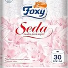 Foxy Seda | Papel higiénico 30 rollos | 173 servicios por cada rollo | Neutro para la piel | Certificación FSC | 100% Energía eléctrica renovable | Paquete reciclable producido con plástico reciclado