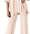 DONYKARRY 2 Piezas Mujeres Outfits De Casual Manga Corta Suéter Tops Y Pantalones De Piernas Anchas
