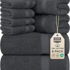 Utopia Towels – Juego de Toallas Premium de 8 Piezas, 2 Toallas de Baño, 2 Mano y 4 Toallitas – Algodón – para Casas, Hoteles y Spas, Altamente Absorbentes (Gris)