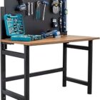 Kompak Banco de Trabajo Plegable de Pared con Altura Regulable – Mesa de Trabajo Plegable con Panel Perforado y Ganchos – Banco de Trabajo con Encimera de Madera y Estructura de Acero Reforzado