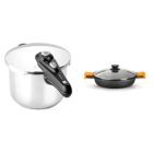BRA 185104 Olla, Acero Inoxidable, Plata, 24 cm + Efficient Cacerola baja con tapa de cristal y asas de silicona, 28 cm,con antiadherente Teflon Platinum Plus,apta para inducción.Libre de PFOA.