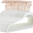 Amazon Basics – perchas antideslizantes, delgadas, con acabado de terciopelo,Paquete de 50, Marfil/Dorado