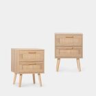 KLAST Pack 2 mesitas de Noche de 2 cajones en ratán Natural