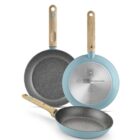 BRA Set de sartenes 18-22-26 cm, aluminio forjado con antiadherente, aptas para todo tipo de cocinas incluida inducción, Turquesa, 18-22-26 cm