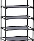 SONGMICS Zapatero, Organizador Zapatos, 8 Baldas, Zapatero Abierto Estrecho, 28 x 46 x 145 cm, Marco de Metal, Estantes de Tela no Tejida, para Pasillo, Dormitorio, Gris LSR024G02