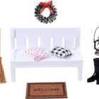 Aolso Accesorios para Casa De Muñecas, 7Pcs Miniatura para Casa De Muñecas, Decoración De Casa Mini Banco Decorativo Botas De Lluvia Escoba Lámpara De Aceite Conjunto De Accesorios para El Hogar