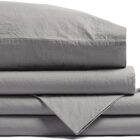 MISSUNA – Juego de Sábanas 4 Piezas, Cama 180 cm – Gris | Sábana Bajera Ajustable, sábana encimera y 2 Fundas de Almohada | 100% Algodón Orgánico Percal | Made in Portugal
