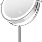 Auxmir Espejo Maquillaje con Luz, Aumento 1X / 10X, Espejo Sobremesa Recargable USB 1800mAh, Giratorio 360°, 3 Colores y Brillo Ajustable, para Baño Tocador Afeitar Depilar, Plata