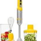 Mellerware Batidora de mano Spiro! | Picadora eléctrica 1000 W de potencia | Acero inoxidable | Velocidad regulable | Luz Led | Función Turbo | Incluye Vaso medidor, Varillas y Picadora (Amarillo)