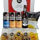 Valeli.Cesta Cervezas Estrella Galicia. Cesta gourmet regalo original con frutos secos y snacks. Regalo para él, ella, amigo, SAN VALENTÍN, cumpleaños, padre, enamorados (ESTRELLA GALICIA 0,0)