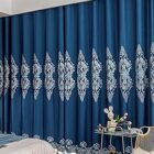 Homxi Cortina Salón 2 Piezas,2 x 107W x 132H CM,Cortinas de Salon Opaca Azul Marino Patrón de Bordado Cortinas Dormitorio con Ojales