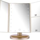 Espejo de Maquillaje con LED, Iluminado Espejo de Mesa Luz con Ampliación 1X / 2X / 3X Plegable Espejo de la Vanidad Rotación 180° Pantalla Táctil Espejo Cosmético para Hombre y Mujer