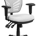 Flash Furniture Silla de escritorio ergonómica, giratoria, de malla, multifunción, respaldo medio, reposabrazos ajustables, color Blanco