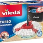 Vileda Turbo – Juego de fregona con palo telescópico, cubo escurridor giratorio y recambio de microfibras, incluye 1 recambio adicional, color negro y rojo, formato caja