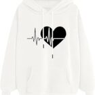 Uwdiohq Sudadera con Capucha Estampada con Estampado De Corazón para Mujer, Top Cómodo Y Suelto con Cordón Sudadera De Pelo Mujer Sudadera Negra Capucha Jersey De Mujer Elegantes Invierno