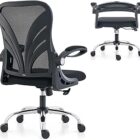 HOLLUDLE Silla de Oficina Ergonómica con Respaldo Plegable, Silla de Escritorio con Reposabrazos, Asiento Ancho y Soporte Lumbar de Malla, Silla Giratoria Ejecutiva para Computadora, Negro