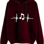 Uwdiohq Sudadera con Capucha De Color Sólido con Estampado De Musicales De Manga Larga Y Cuello para Mujer Top Suelto De Ropa Casual Chica Chaqueta Vaquera Roja Mujer Chaqueta Vaquera Negra