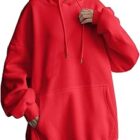 Uwdiohq Sudaderas con Capucha Informales para Mujer, Estampado Gráfico De Letras, Manga Larga, con Cordón, Sudadera con Capucha, Tipo Túnica con Bolsillos Sudaderas Capucha Roja