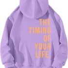 Uwdiohq Sudadera con Capucha Estampada The Timing of You Life De Manga Larga Sin Cremallera En La Espalda para Mujer Sudaderas Baratas Mujer Jersey Animal Print Mujer Jersey Mujer Invierno Largo