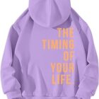 Uwdiohq Sudadera con Capucha Estampada The Timing of You Life De Manga Larga Sin Cremallera En La Espalda para Mujer Sudaderas Baratas Mujer Jersey Animal Print Mujer Jersey Mujer Invierno Largo