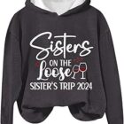 Uwdiohq Sisters On The Loose Sisters Trip 2024 Divertida Sudadera De Vacaciones Casual con Capucha Tops Blusas De Manga Larga Sudadera Barata Mujer Sudadera Rayas Mujer Jersey Vestido Mujer