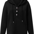 Uwdiohq Sudaderas con Capucha con Dobladillo Dividido para Mujer Camisas con Botones Manga Larga Cordón con Capucha Oversize Invierno Otoño Sudares Mujer Sudadera De Flores Mujer Sudadera Navidad