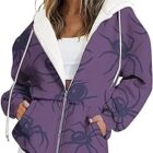 Uwdiohq Sudaderas con Cremallera para Mujer Sudadera Extragrande con Estampado De Halloween con Bolsillo Chaquetas De Otoño De Manga Larga Sudadera Coral Chaqueta Sudadera Mujer