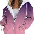 Uwdiohq Otoño Gradiente Impresión Casual Bolsillo Chaqueta de Manga Larga Lindo Cordón Sudadera con Capucha Cremallera Sudadera con Capucha para Mujer Ropa Abrigo Mujer Invierno