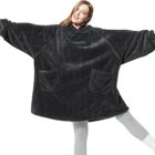 Bedsure Batamanta Mujer Polar Invierno – Bata Manta Hombre con Mangas, Sudadera Manta con Capucha, Blanket Hoodie de Tejido Felpa Suave con Bolsillo Frontal, Manta Bata Gigante Gris Negro, 95×85