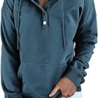Uwdiohq Sudaderas para Mujer Botón Abajo V Sudaderas con Capucha Bolsillo Cuello Manga Larga Cordón Largo Sudaderas con Capucha Sudaderas con Capucha para Mujer Chaqueta Deportiva Mujer