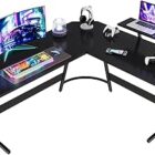 Devoko Escritorio Gaming de Esquina,150 x 130cm,Escritorio Gamer en Forma de L con Soporte de Monitor, Gancho para Auriculares,para Estudio,Oficina,Gaming,Dormitorio(Carbono Negro)
