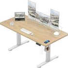 TRIUMPHKEY Pupitre Regulable en Altura 180x80cm pupitre Grande con 3 memorias Pupitre para Ordenador Regulable en Altura anticolisión Mesa Regulable en Altura Toma USB Roble Blanco