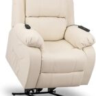 ZZ DON DESCANSO – Sillón Relax Eléctrico Levanta Personas Trevi Crema, Reclinación 160º, 10 Programas, Temporizador, Calor Lumbar, Sist. Masaje 4 Zonas, Acabado PU, Incluye Mando