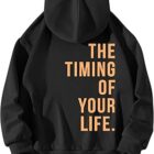Cocila Sudadera con Capucha Estampada The Timing of You Life Manga Larga sin Cremallera en la Espalda para Mujer Sudaderas Negras Cazadora Vaquera Mujer Sudadera Dia De La Mujer