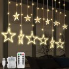 Cortina de luces con 12 Estrella, Guirnalda Luces de Navidad Decorativas 2.5m 138 LED, 8 modos de parpadeoLuces De Cortina De Ventana Blanco Calido, Decoración Para La Navidad (A – (Blanco Cálido))