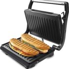 Taurus – Sandwichera eléctrica Grill & Toast 700W, Placas grill antiadherentes, Placa superior auto ajustable, Asa cool touch, Sistema de bloqueo, Almacenaje vertical, Negro