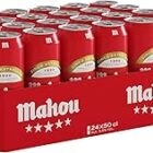 Pack de 24 latas de 50 cl de Mahou 5 estrellas, cerveza lata icónica nacida... Leer más