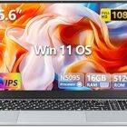 Ordenador Portátil Win 11, 15.6 Pulgadas PC Portatil 16Go LPDDR4 RAM 512Go SSD, Celeron N5095 CPU, Desbloqueo Huellas Dactilares/Teclado Retroiluminado, 180° Flip IPS Pantalla, Webcam+BT4.2+USB3.0