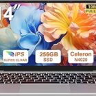 bvate Ordenador portátil 2025 de 14 pulgadas Win11 256 GB SSD compatible con portátil Celeron N4020 (hasta 2,8 GHz) 1080p WiFi BT4.2, protector de teclado alemán y ratón inalámbrico, color plateado