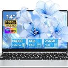 Celeron N4000 14.1 Inch Laptop PC Laptop 6GB RAM 256GB SSD Laptop 180° Flip Screen Mini HDMI 2*USB 3.0 Silver Slim Lightweight Laptop
