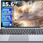 Ordenador Portátil 15.6", PC Portatil 24GB RAM 512GB SSD (Ampliable hasta 1TB), Portátil Celeron N5095 CPU Lapto Win11, FHD 1920 * 1080, WiFi5G, USB3.0 * 2, Webcam, Retroiluminado y Huella Dactilar