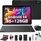 WOREGOO Tablet de 10 Pulgadas, Android 14 Tablet táctil 36G RAM + 128G ROM, 5G WiFi, Octa-Core 2.0 GHz, 8000mAh, 1280 * 800 HD, Cámara 5MP+8MP con Teclado/Ratón/Funda -Negro